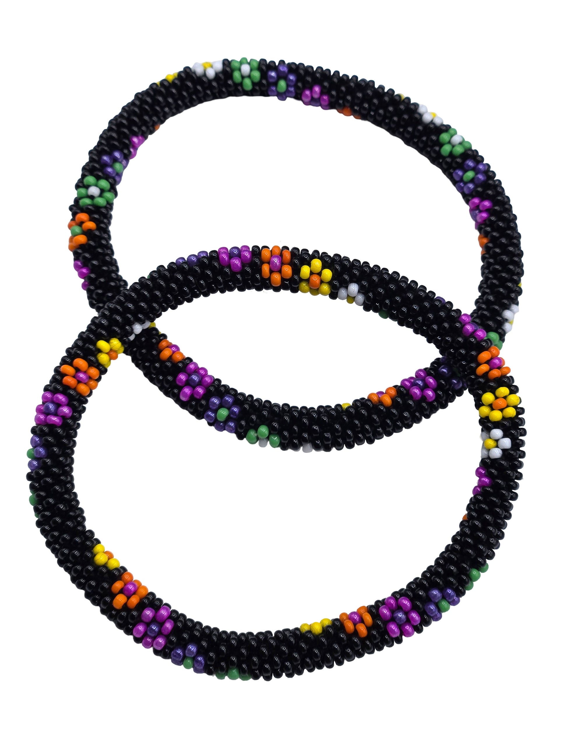 🌸 Handmade in Nepal – These bangles are a standard 7 inches around and have some stretch when putting them on. Material: Czech glass beads , Bracelet length- 7 Inches, Style- Boho & hippie Roll Over Bracelets.